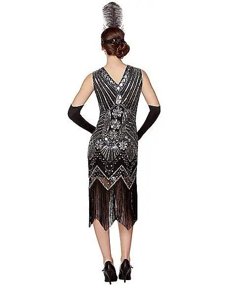 Let’s have a ball, toots! Dance like it’s the prohibition era in our beautiful black adult beaded flapper dress. Dance to some jazz this Halloween and celebrate like it’s the ’20s! This beaded dress features fringe detail that will have you coined as best dressed!