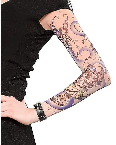 Get that bod looking tatted up this Halloween with this Biker Fairies Sleeve Tattoo. This tattoo is simple to apply and is perfect for completing any biker or punk style look.