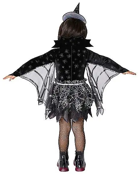 Put a spooky spin on your witch style with this spider web witch costume! This creepy, crawly costume features a long-sleeved dress adorned with spiders and webs. A high collar, laced neckline, and sheer wings make this costume totally unique!